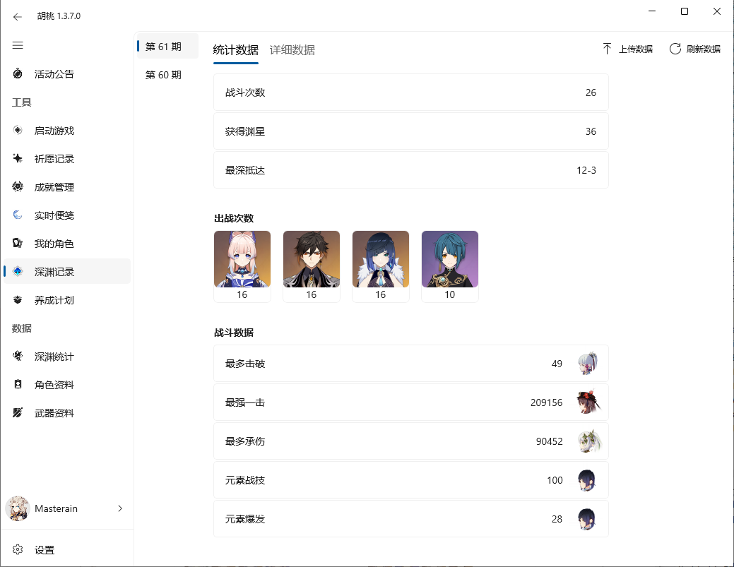 胡桃工具箱提供两个主要的深境螺旋挑战统计的功能