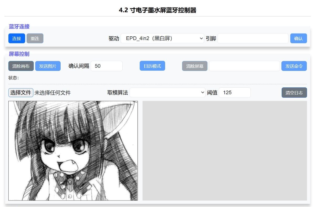 4.2 寸电子墨水屏固件,带有一个网页版上位机,可以通过蓝牙传输图像到墨水屏,也可以把墨水屏设置为日历模式(支持农历、节气、节假日调休显示)。