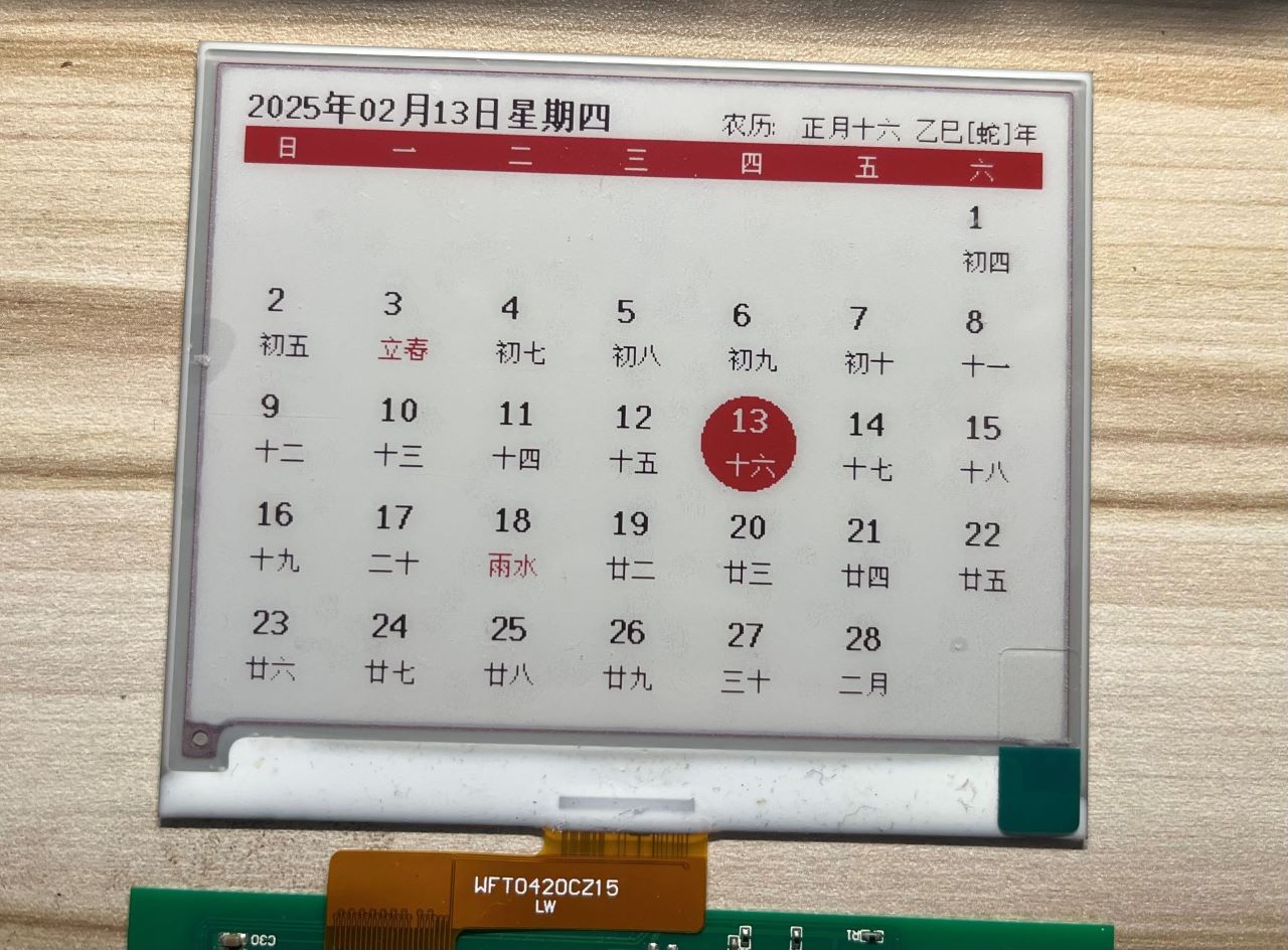 4.2 寸电子墨水屏固件,带有一个网页版上位机,可以通过蓝牙传输图像到墨水屏,也可以把墨水屏设置为日历模式(支持农历、节气)。