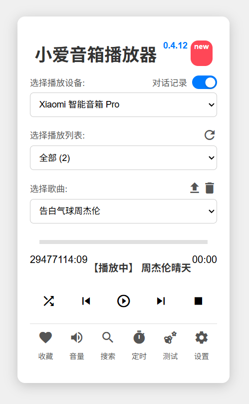大佬现在有个新问题,不知道是我的个例还是设备问题。家里有两台小米设备,一台米家音箱,一台触屏音箱,都是初版。米家音箱各项功能都正常,包括用风花雪月app控制播放暂停。但是触屏音箱有问题,在网页后台控制,点击播放暂停都可以正常用,但是停止的时候音箱没有停止语音反馈(米家音箱是有的),但是用着也还是没问题,用风花雪月app就有问题了,点播放可以放歌,但是一点就没反应,而且点了以后再网页后台也无法控制了,播放时间会开始一直跳,后台两个音箱都无法被发现,只能重启容器后正常。但是一通过风花雪月控制就会重复出现上面的问题。只能再次重启容器