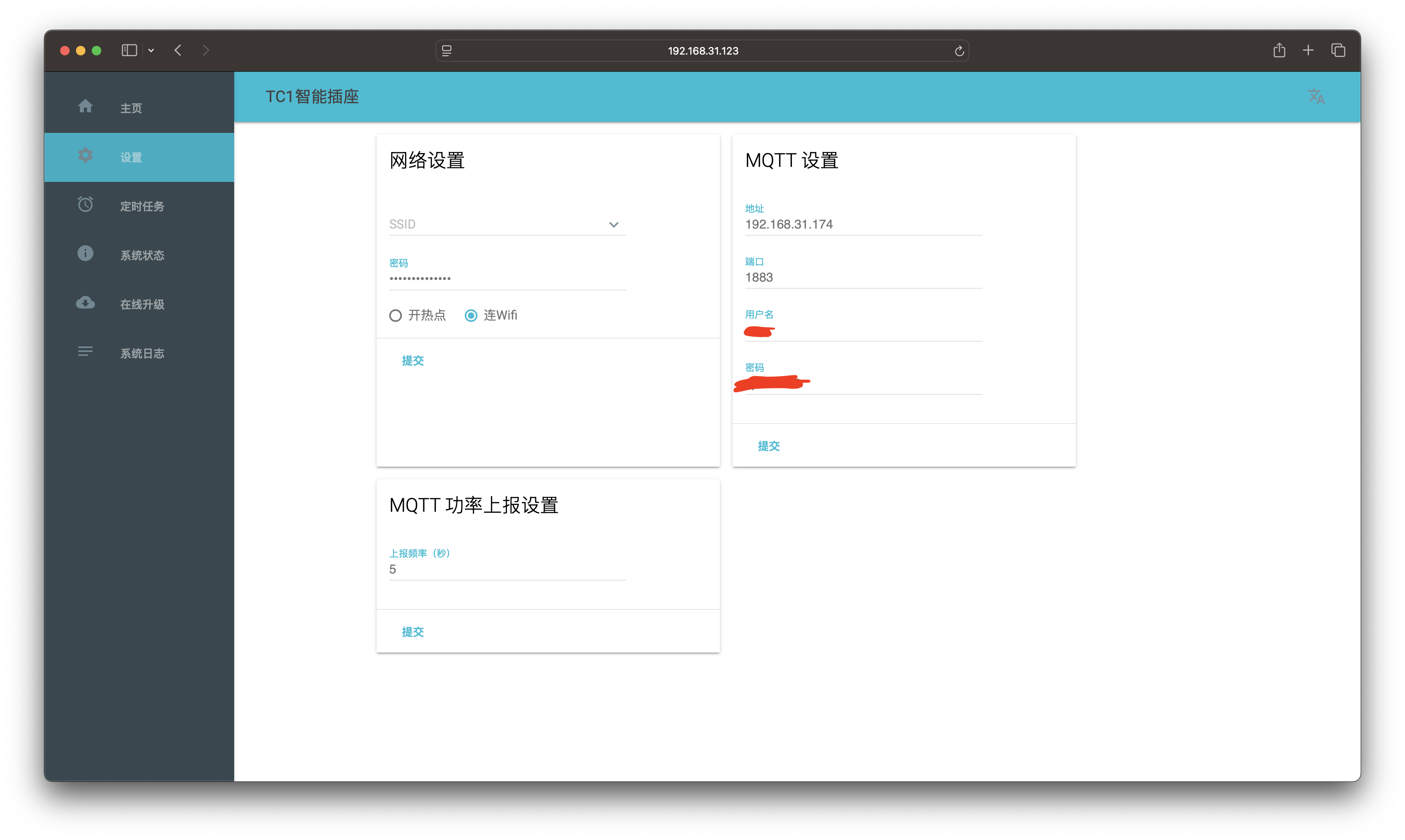 - 可以设置mqtt数据上报频率,默认2秒